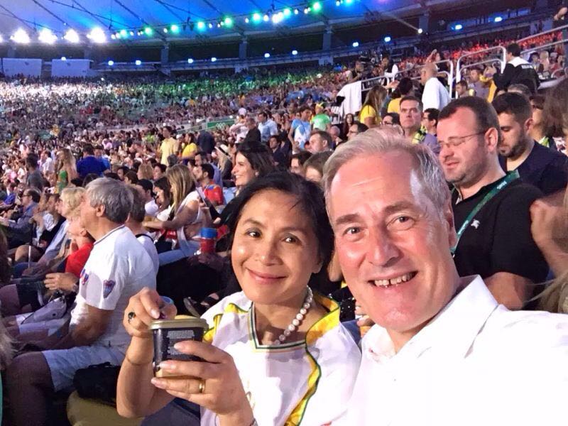 一周前,我和雪琳獲得了人生中最重要的榮譽(yù)之一:國際奧林匹克委員會主席托馬斯 ·巴赫親自邀請雪琳成為里約奧運(yùn)火炬手,將奧運(yùn)圣火傳遞200米。誠然,這段傳遞也許并不是那么風(fēng)光,道路周圍景象蕭索,但很快熱情洋溢的海外華人朋友們和支持者們就站滿了道路兩旁;誠然,火炬?zhèn)鬟f只持續(xù)了幾分鐘,但我們與至少另外一萬兩千名火炬手共同分享了這一榮耀。無論是在奧林匹亞的赫拉神廟,還是在里約,能夠參與傳遞奧運(yùn)圣火都是無上的光榮,我們將永遠(yuǎn)難忘這一段經(jīng)歷。2012年為了宣傳奧林匹克休戰(zhàn),我從希臘奧林匹亞徒步走回到倫敦,這次為了宣傳奧林匹克休戰(zhàn)以及為聯(lián)合國兒童基金會募集善款,我從布宜諾斯艾利斯徒步走到里約,雪琳總是無私地支持我每一步的行動,這項殊榮對她而言再合適不過了。