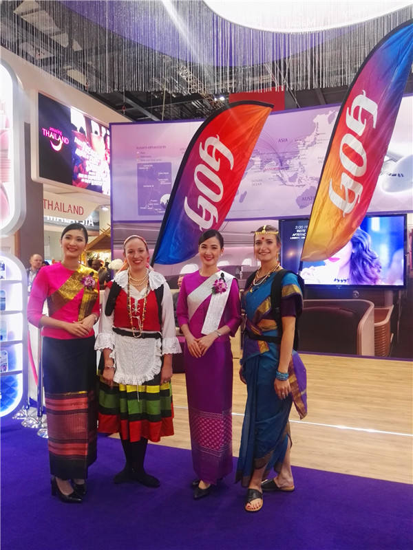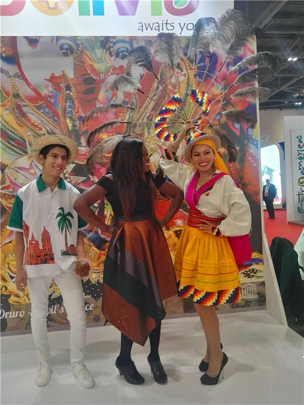 2016世界旅游交易會現(xiàn)場,各國展示民族服裝。(白天行攝)