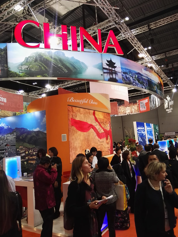 2016世界旅游交易會現(xiàn)場的中國館。(白天行攝)
