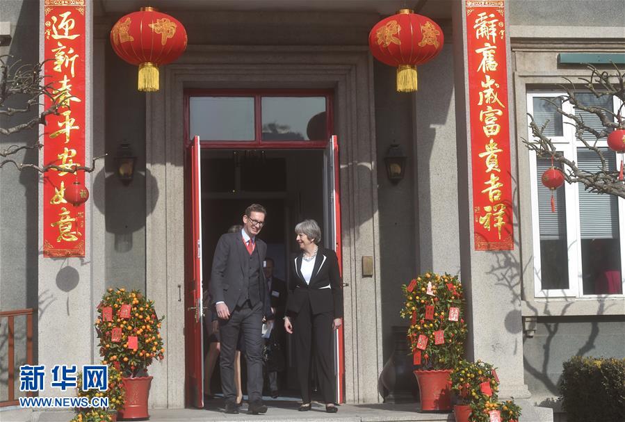 2月1日,英國首相特蕾莎·梅在北京出席在英國駐華大使官邸舉辦的文化招待會。這是特蕾莎·梅走出大使官邸。 新華社記者 金良快 攝