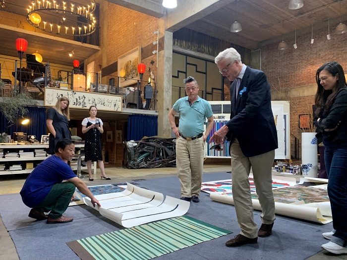 古德豪斯參觀中國藝術(shù)家魏立剛的工作室